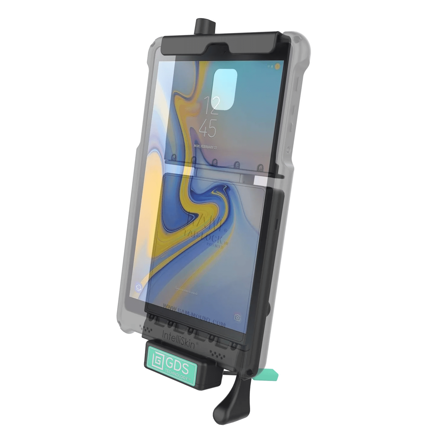 The RAM® Locking Vehicle Dock with GDS® is a spring-loaded, quick-release cradle with a keyed lock that offers a secure fit with easy access to the mounted tablet. This docking station is compatible with the Samsung Galaxy Tab A 10.5 SM-T597 (LTE) with IntelliSkin®. The integrated GDS® platform enables data sync and charging capabilities. Without the need to remove the IntelliSkin® sleeve from the device, users can quickly and efficiently mount the tablet in the vehicle dock while keeping the device charged and locked in place. This dock is designed to meet the demands of field workers in a variety of applications, including transportation, field sales, logistics, manufacturing, and much more.