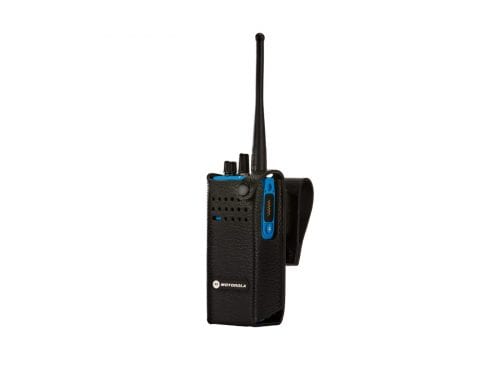 Leather carry case with swivel clip compatible with Motorola radios using 1500mah capacity battery